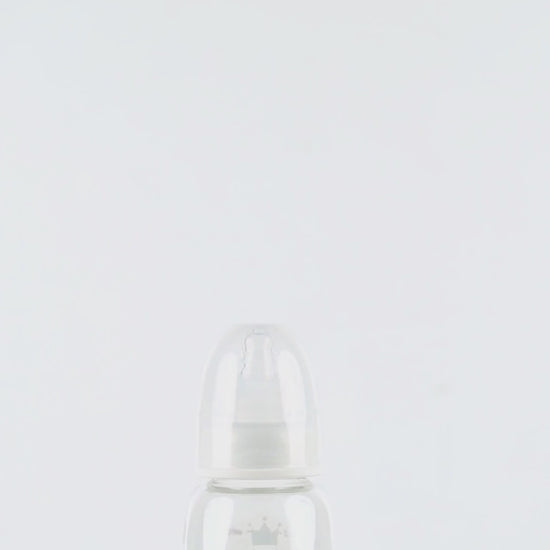 - This glass bottle is designed to make the transition from breast to bottle feeding easier.