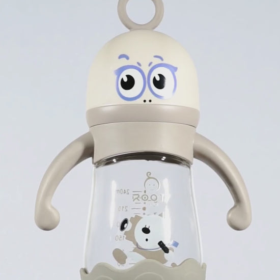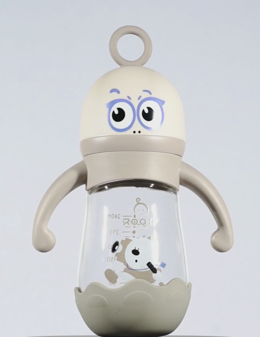 M05-Choco Glass Bottle: 240ML/8 OZ Capacity with Soft Handle and Protective Base